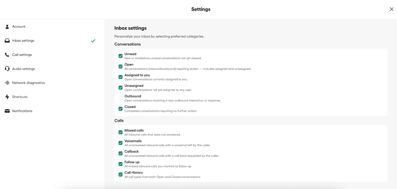 Aircall Workspace vous permet de personnaliser l'affichage des conversations, appels et messages dans votre boîte de réception. En sélectionnant les catégories les plus pertinentes pour votre flux de travail, vous pouvez vous concentrer sur les éléments qui nécessitent votre attention tout en conservant l'accès à l'historique complet des conversations et des appels.