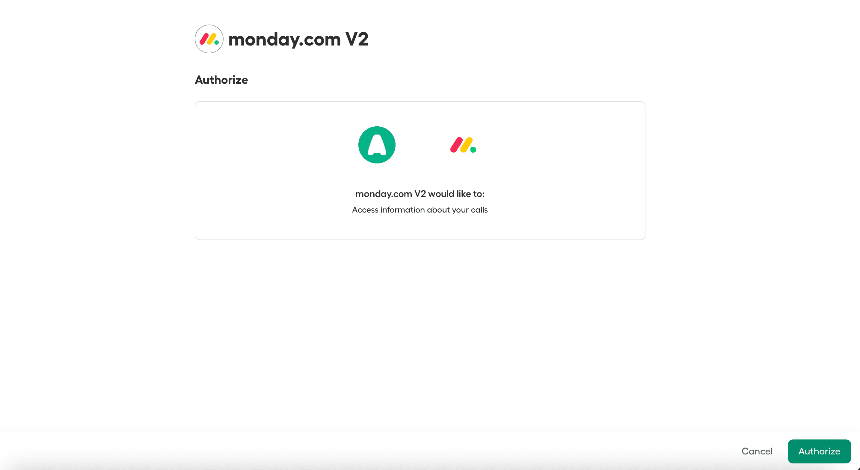 Vous serez redirigé vers monday.com pour compléter l’autorisation. Si vous n’êtes pas connecté, il vous sera d’abord demandé de le faire.