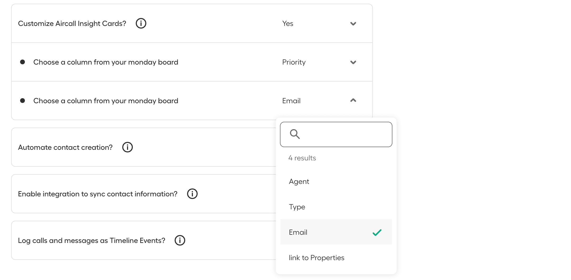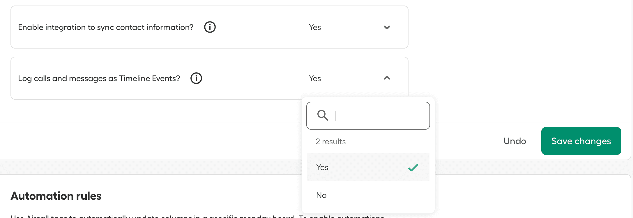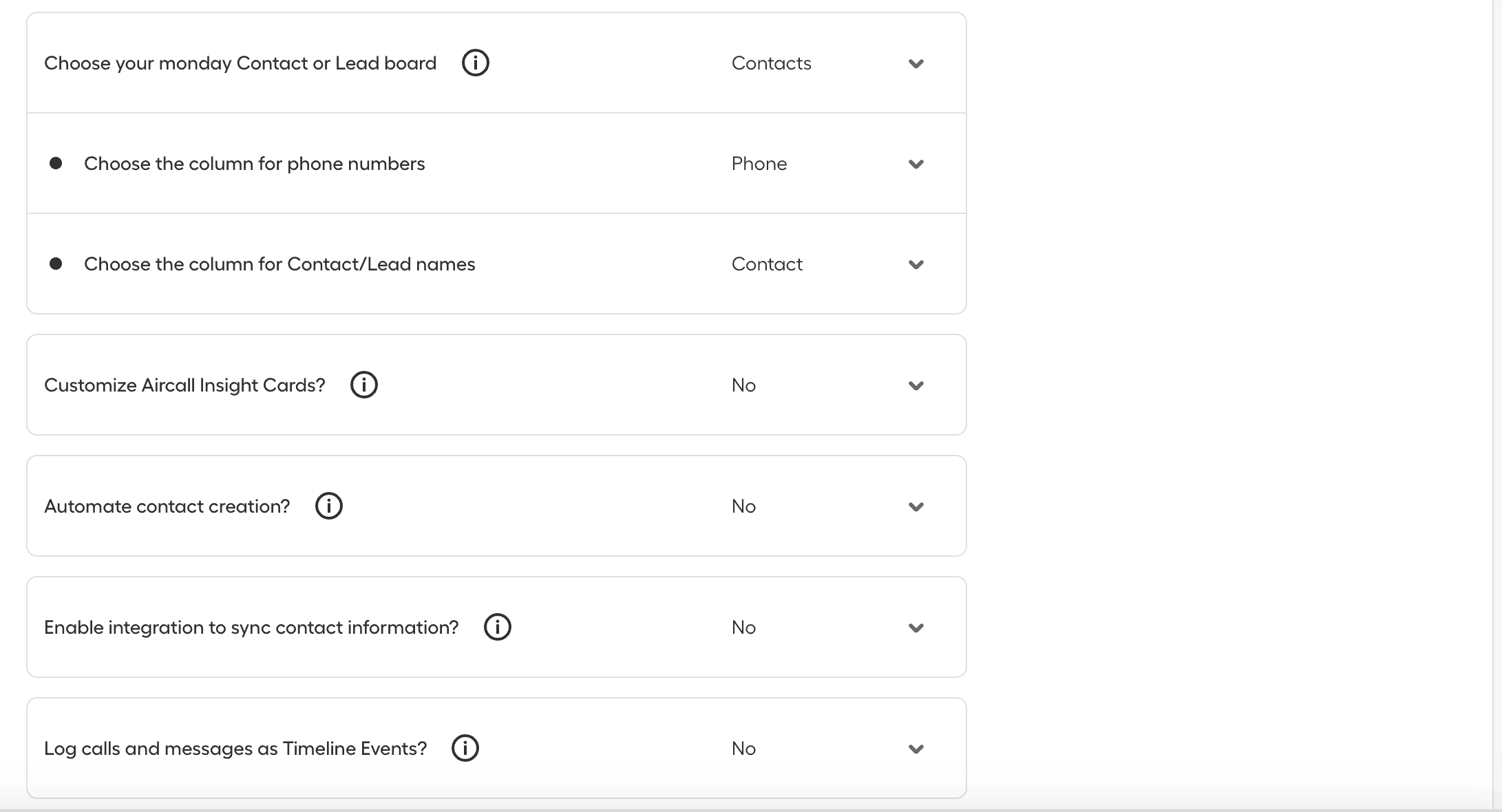 Activez ces options pour gérer les contacts entre Aircall et monday.com :
